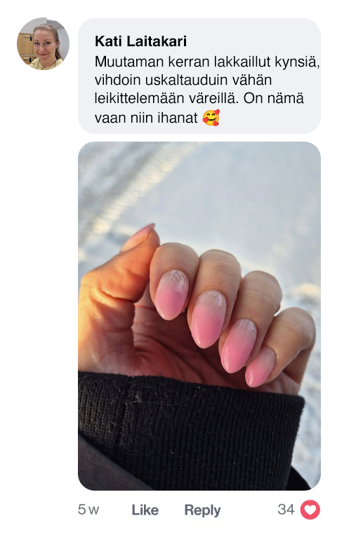 ihmisistä rakasti sitä, kuinka kevyiltä ja luonnolliselta heidän kyntensä tuntuivat.